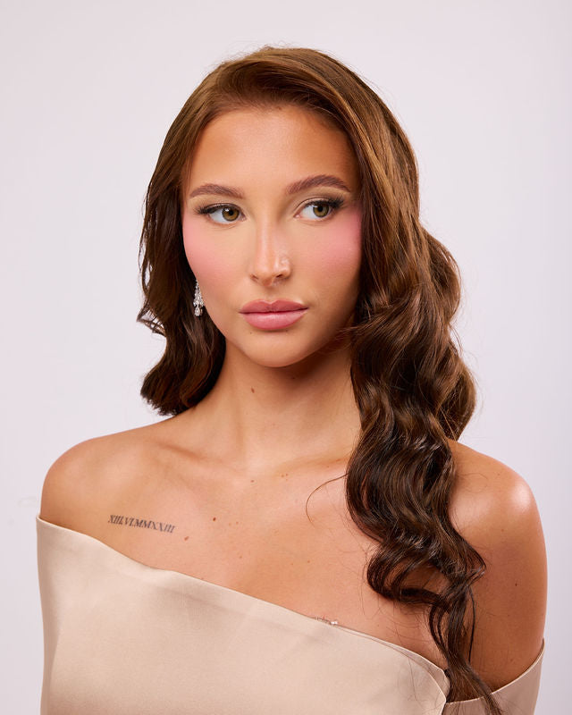 Make an unforgettable statement in the Eliza Grand Gown, a masterpiece of elegance and design. The bodice features a beautifully draped off-the-shoulder neckline crafted from luxurious, shimmering champagne satin. This top section provides a flattering, sensual frame for the shoulders and décolletage.